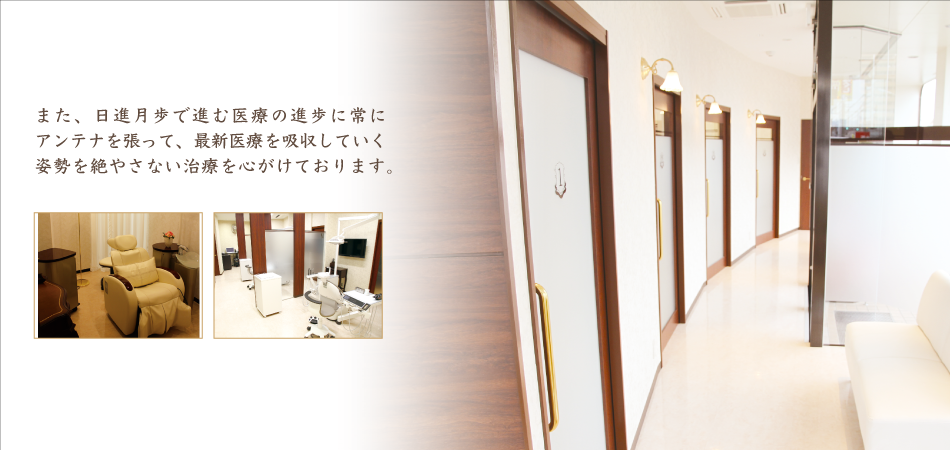 また、日進月歩で進む医療の進歩に常にアンテナを張って、最新医療を吸収していく姿勢を絶やさない治療を心がけております。技術はもちろんですが、気さくで優しく患者さまに愛される人間味あふれる医院を目指します。
